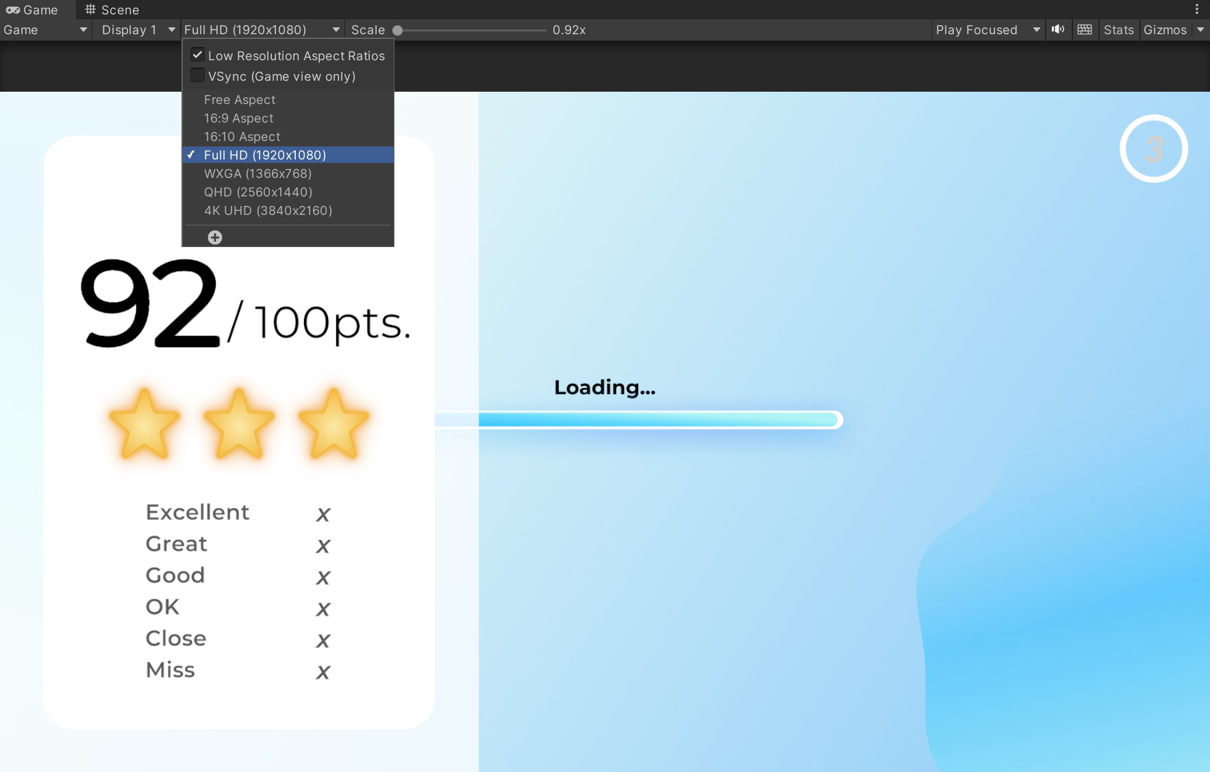 All of the UI was built to best work on a "Full HD" aspect ratio. You can use the dropdown at the top of the game screen to adjust the screen ratio.
